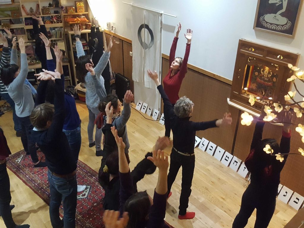 On apprend d’abord les 3 premières lettres, leurs symboliques, la gestuelle et le souffle associé. Puis les 2 suivantes, et ainsi de suite. La danse, et l’histoire qu’elle raconte, s’apprennent ainsi pas à pas.